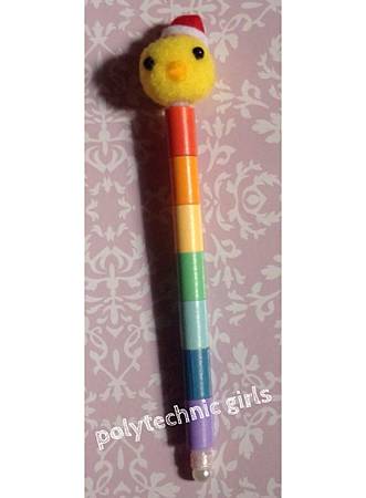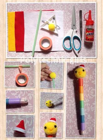 在Step.1所戳出的洞中,擠入些許的保麗龍膠,將小雞對齊黏上