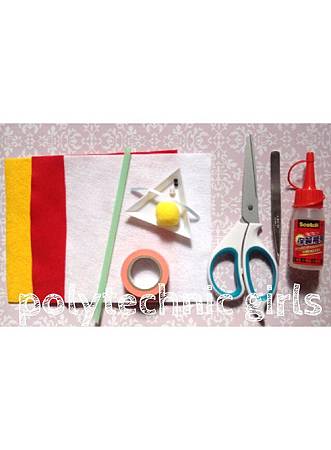 紅色不織布:剪一片半徑1.5公分的半圓形,做成錐狀