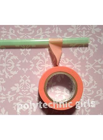(吸管尖頭剪平) 將喜歡的紙膠帶先排列好