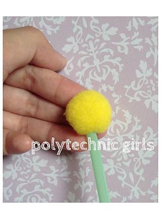用吸管平端先將絨毛球戳出痕跡(等小雞做完後,才方便黏貼)