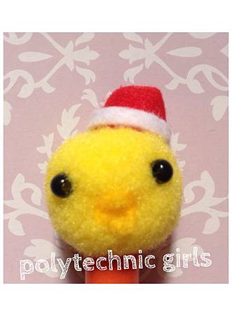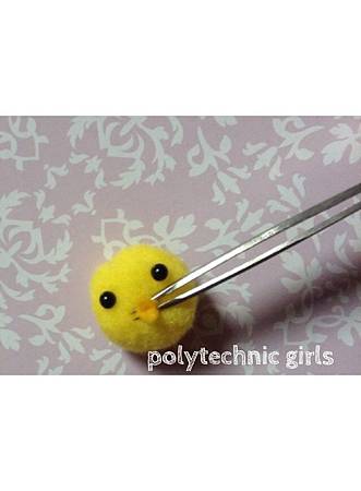 將 黑色圓珠+保麗龍膠 黏接至絨毛球上(為小雞的眼睛)